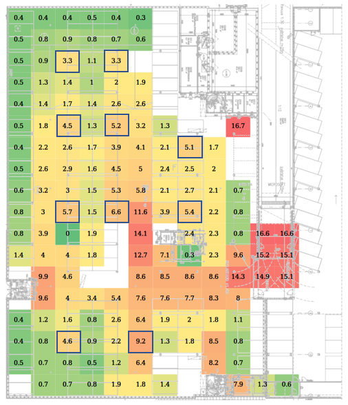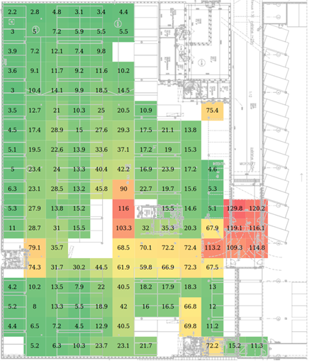 Mực tiêu thụ điện được giảm đáng kể nhờ khả năng phát hiện hiện diện. Ước tính ban đầu cho việc cải tạo sẽ tiêu thụ khoảng 28.000 kWh, nhưng thực tế con số đo được chỉ còn 15.000 kWh – chưa đến một nửa so với dự kiến. Các phép đo được thực hiện chi tiết ở từng đèn, đồng thời biểu đồ nhiệt được lập để minh họa rõ mức độ sử dụng khác nhau tại từng khu vực trong hầm xe.