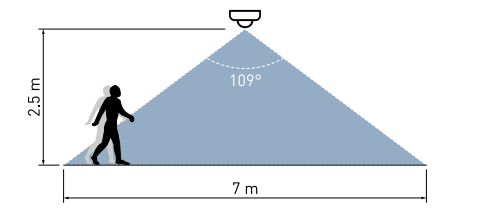 Vùng phát hiện: 38 m² ở độ cao lắp đặt 2.5 m, đạt được khi: